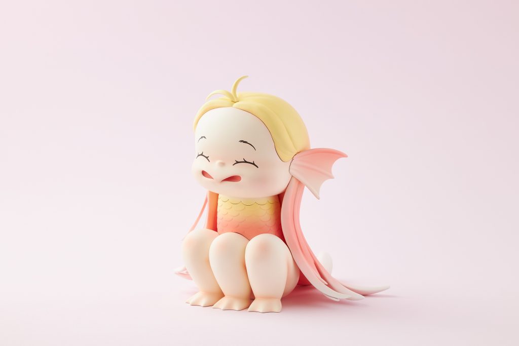 本次雕塑選自中田郁美水彩作品 ,成色和線條感與過去的油畫風格略有不同,表情生動、線條簡約卻不失細節。鬼鬼女孩正因換牙感到開心,感覺自己又長大一些;踩在星星底座上,似乎正為自己感到驕傲! 。