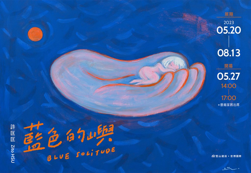 許匡匡2023個展《藍色的嶼》帶來全新創作於5/20-8/13在高雄堅山建設「堅山景仰」展開。許匡匡《藍色的嶼》以心中的島嶼為主題,延續藝術家標誌性的藍色系基調,以富有詩意的童趣形象展開一場關於孤獨 (solitude) 的探索。此次許匡匡與藝術家林羿仲合作,結合其擅長的陶瓷注漿混色的技法,創造出緩緩流動色彩,與運用玻璃等多樣材質為《蘑菇心室》發展新系列作品 。