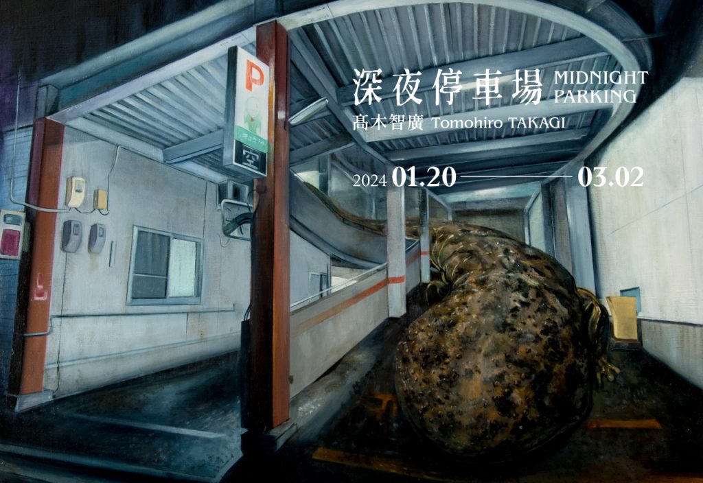 睽違多年雲清藝術很榮幸再次邀請高木智廣Tomohiro TAKAKI來台舉辦個展,本次個展以作品《深夜停車場》為題,呈現似於相對沒有被修飾的停車場空間中暗夜中冷澀的白燈一如往常照映著空蕩深邃的車道,這般熟悉不過的場景,卻在巨型爬蟲以不思議的存在感映入眼簾的同時倏然變了調。