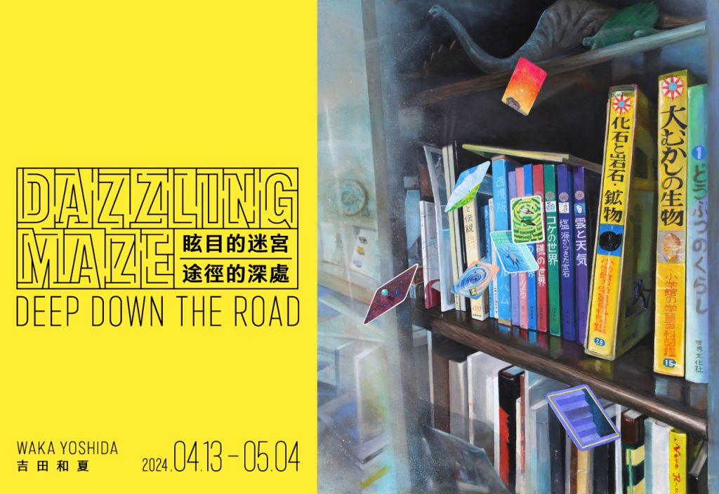 吉田和夏Waka Yoshida台北首次個展【眩目的迷宮 · 途徑深處】,吉田和夏從地形、恐龍、立體模型、礦物等博物學主題中獲得靈感,創作出不受平面或立體限制的作品。以多層次的表現方式描繪出類似現實世界的多元宇宙中的空間、時間和生物等。儘管以日常物件為題,但吉田和夏的作品卻呈現出虛構時空中的奇異探險世界。作品畫面既具有平面感,又有透視和懸浮氛圍