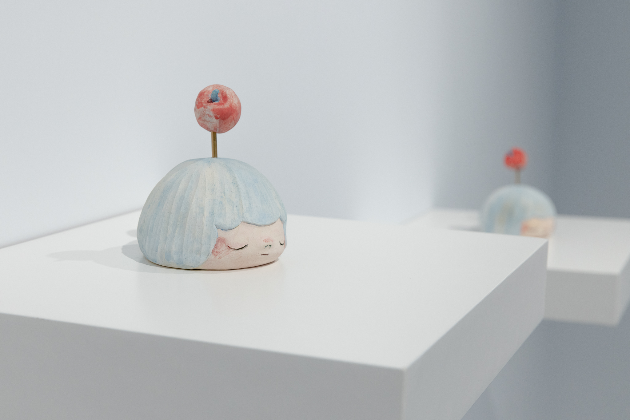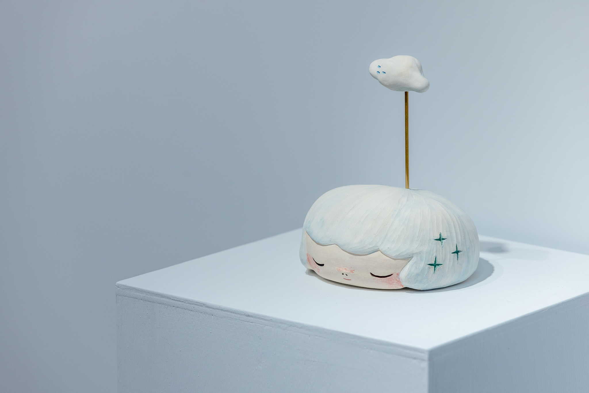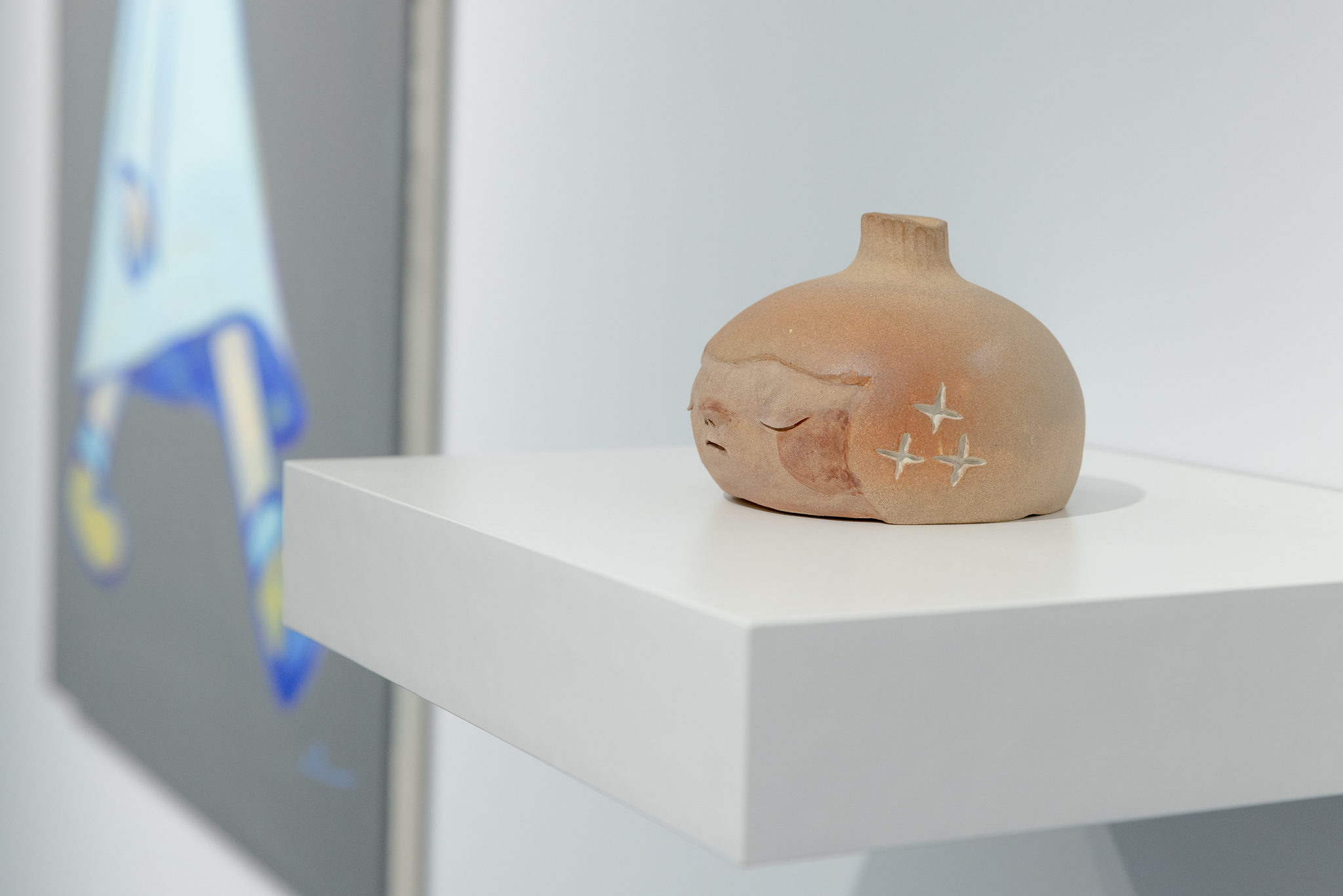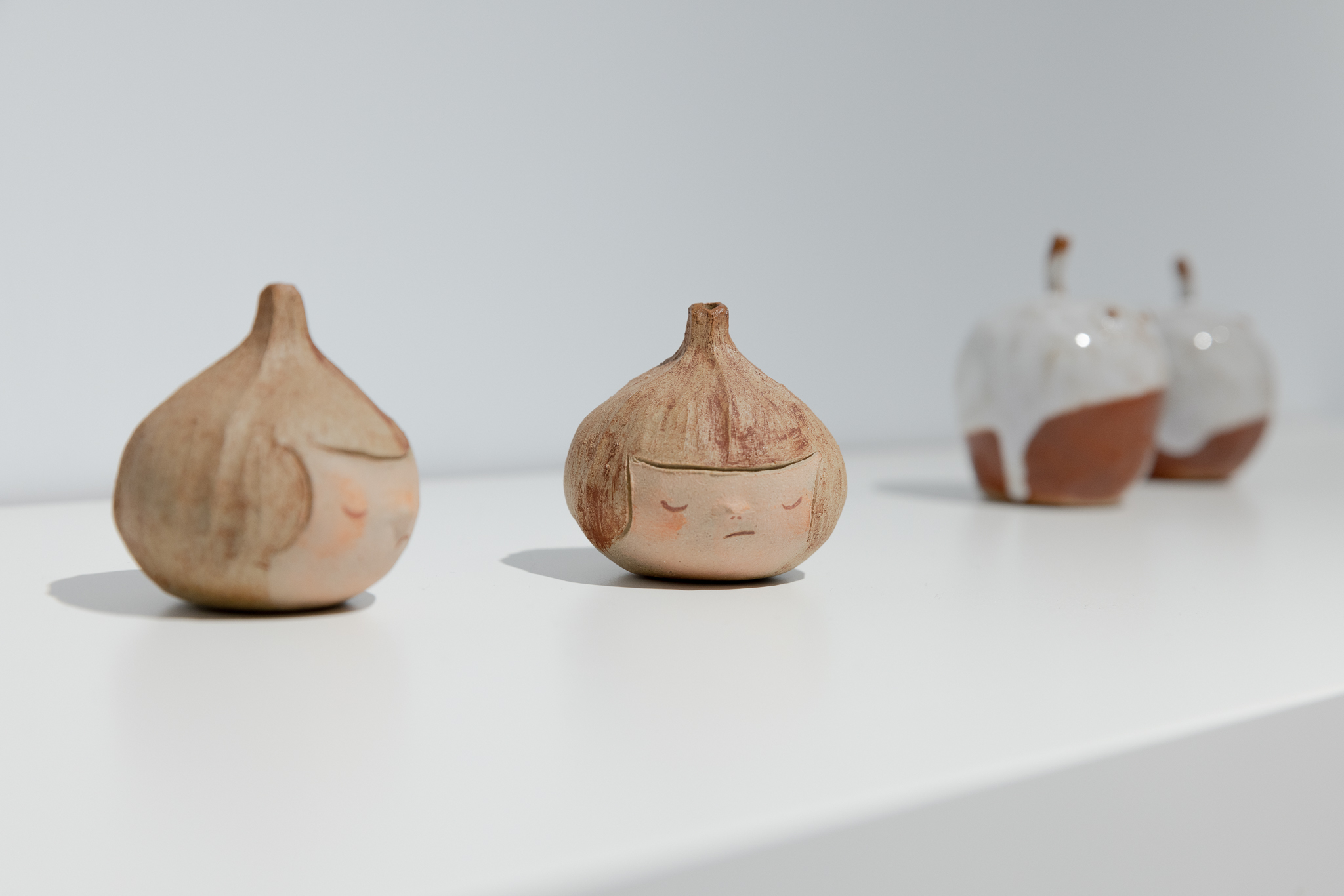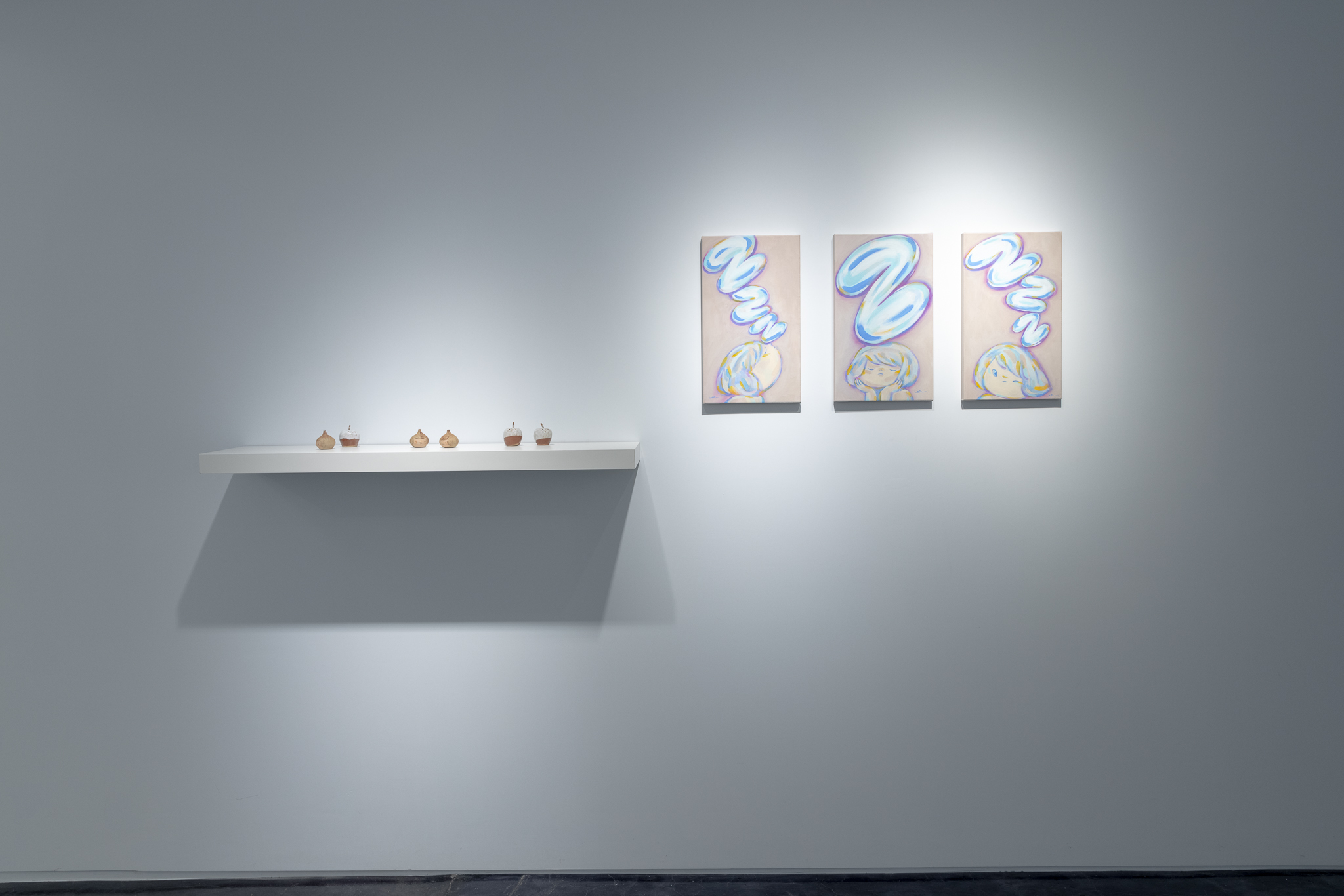 此次展覽的另⼀個亮點,是藝術家將過去平⾯的⾓色立體化,⾸次正式展出的陶作系列。陶作的創作過程中,建構基底時反覆捏塑的增,與陶土硬化後刮削修型的減,也正像是糅合了對生命中取與捨之平衡的觀照。