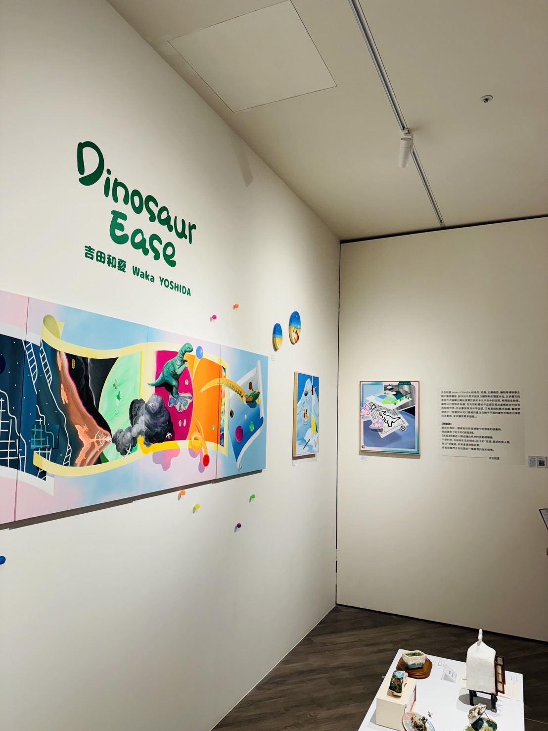 吉田和夏從地形、恐龍、立體模型、礦物等博物學主題中獲得靈感,創作出不受平面或立體限制的作品。