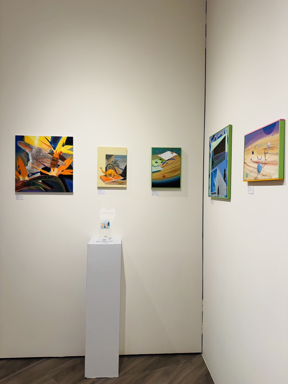 以多層次的表現方式描繪出類似現實世界的多元宇宙中的空間、時間和生物等。儘管以日常物件為題,但吉田和夏的作品卻呈現出虛構時空中的奇異探險世界。