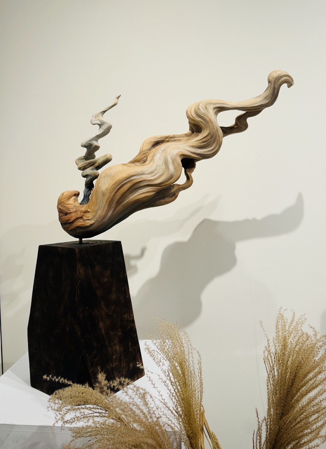 嚴晨威(b. 1995)作品以柔暢且源於自然的線條與朦朧暈彩的冷暖色調,結合原木溫潤有機質地,體現了動感又兼備和諧之美。