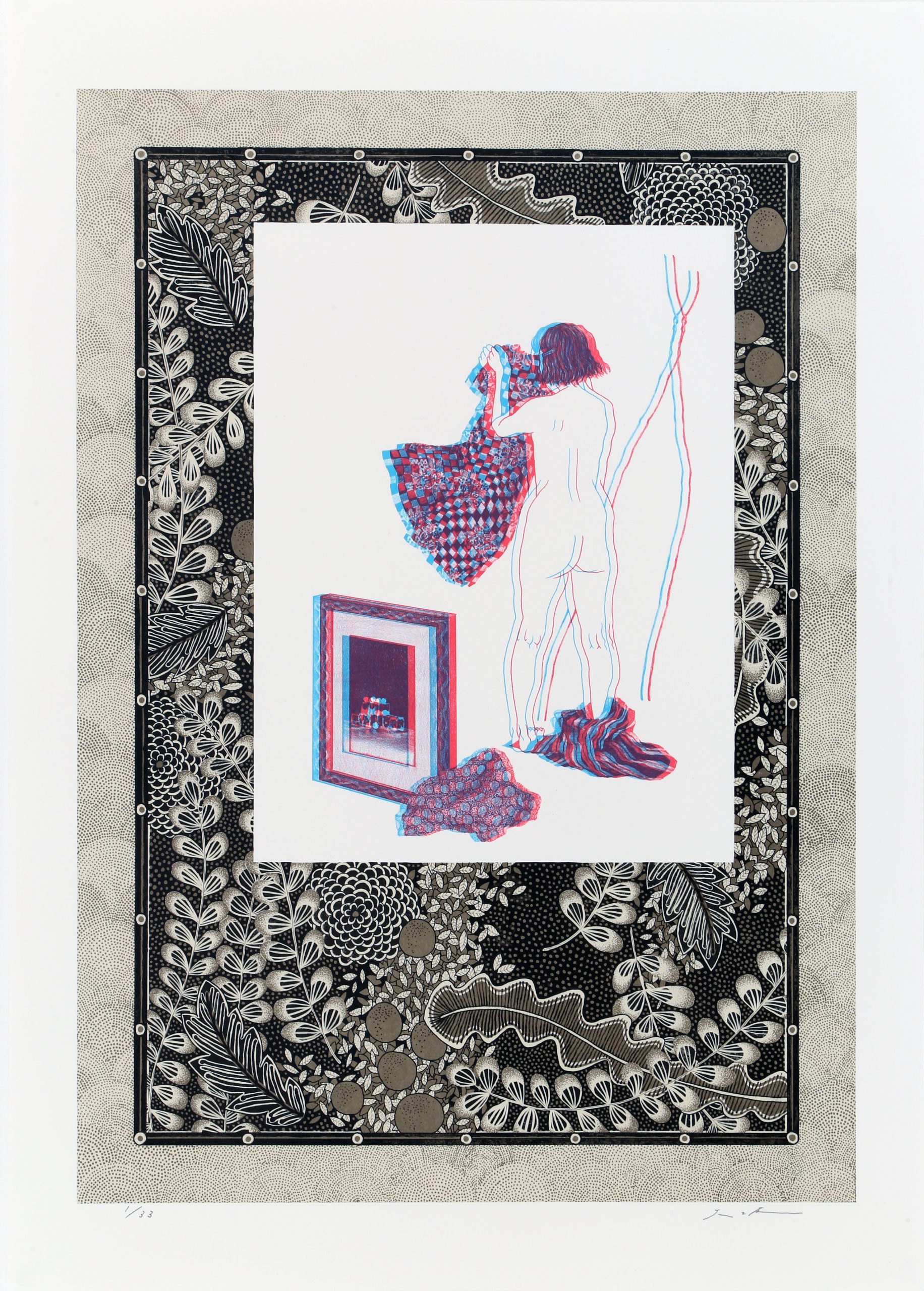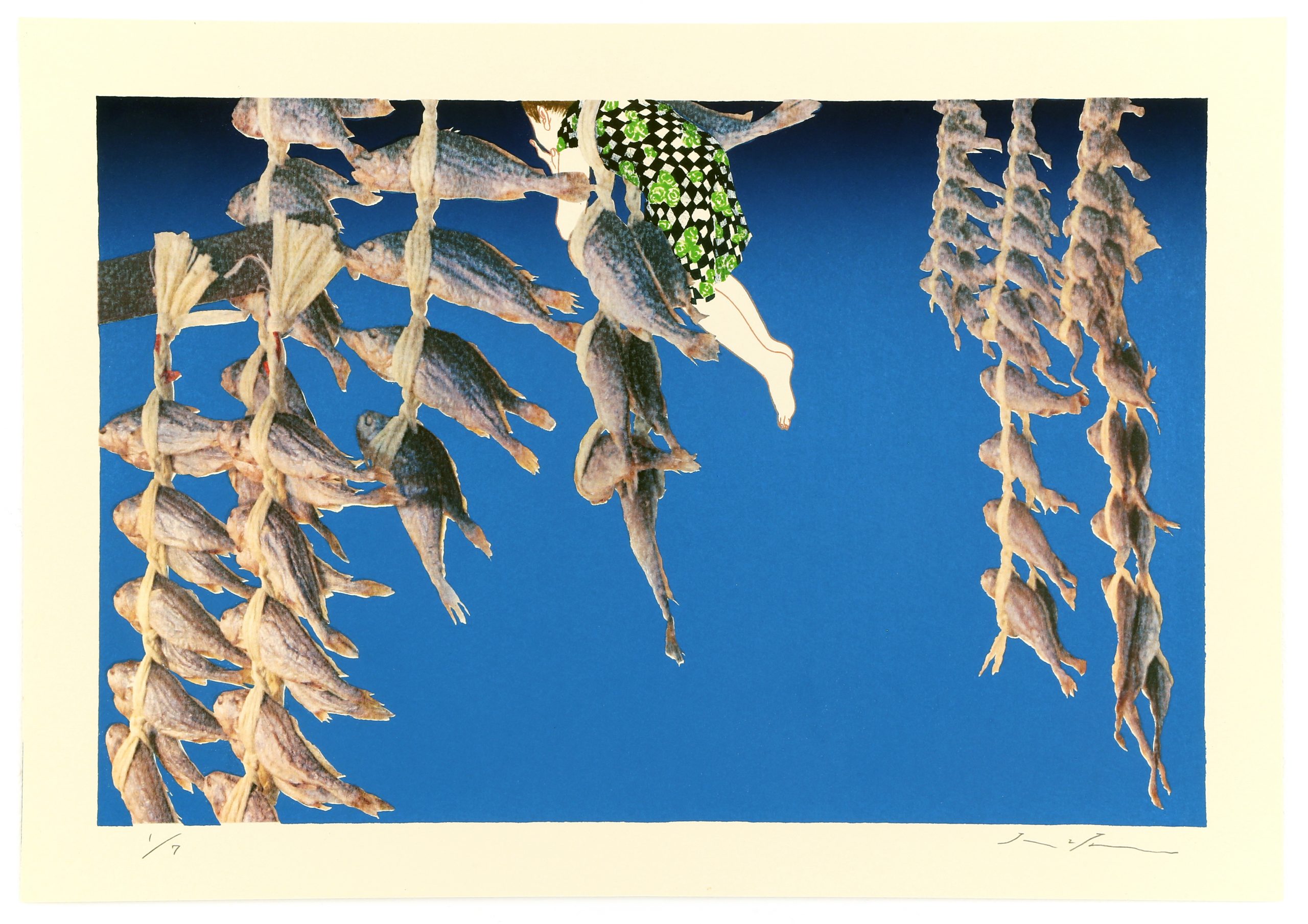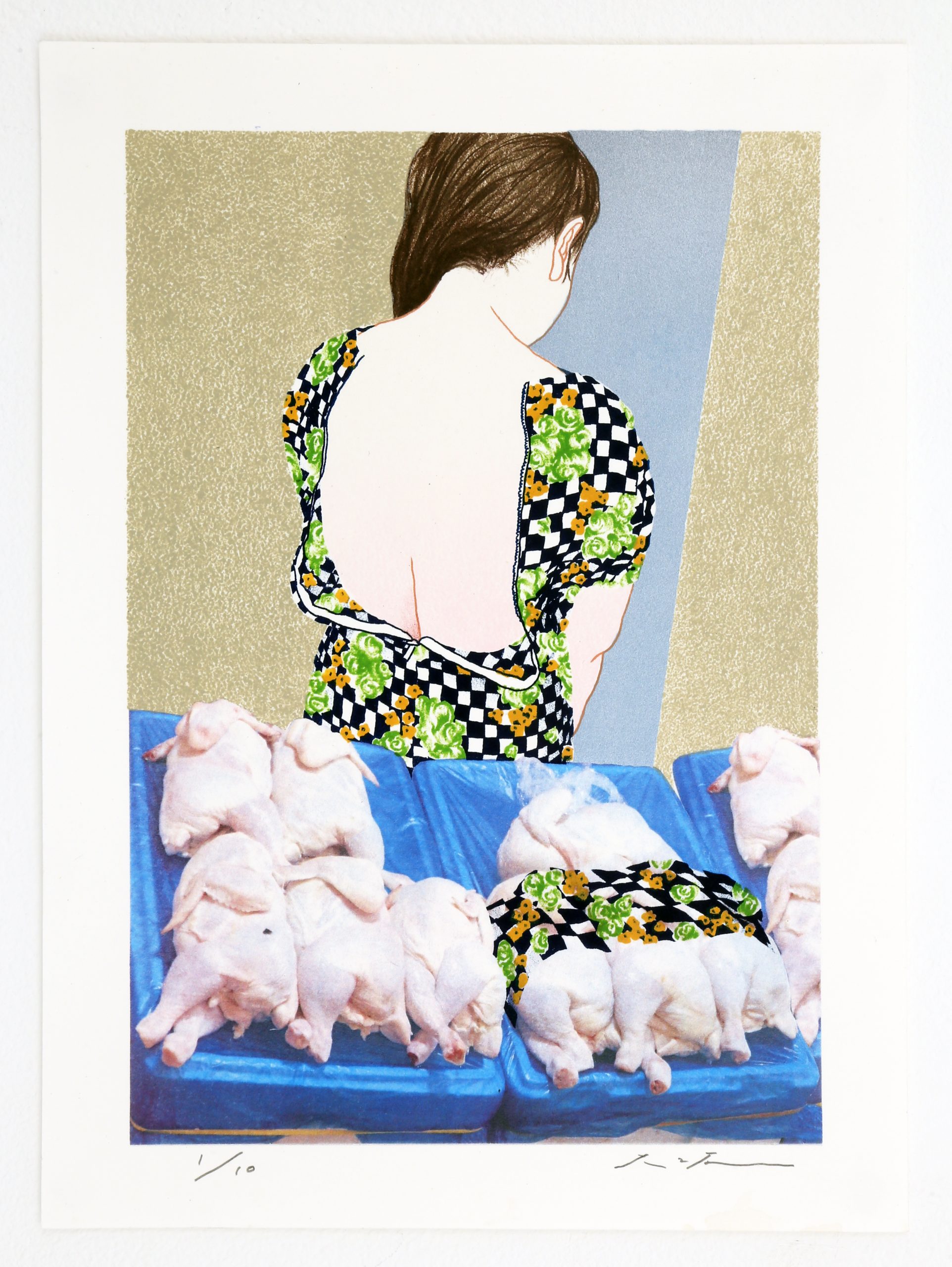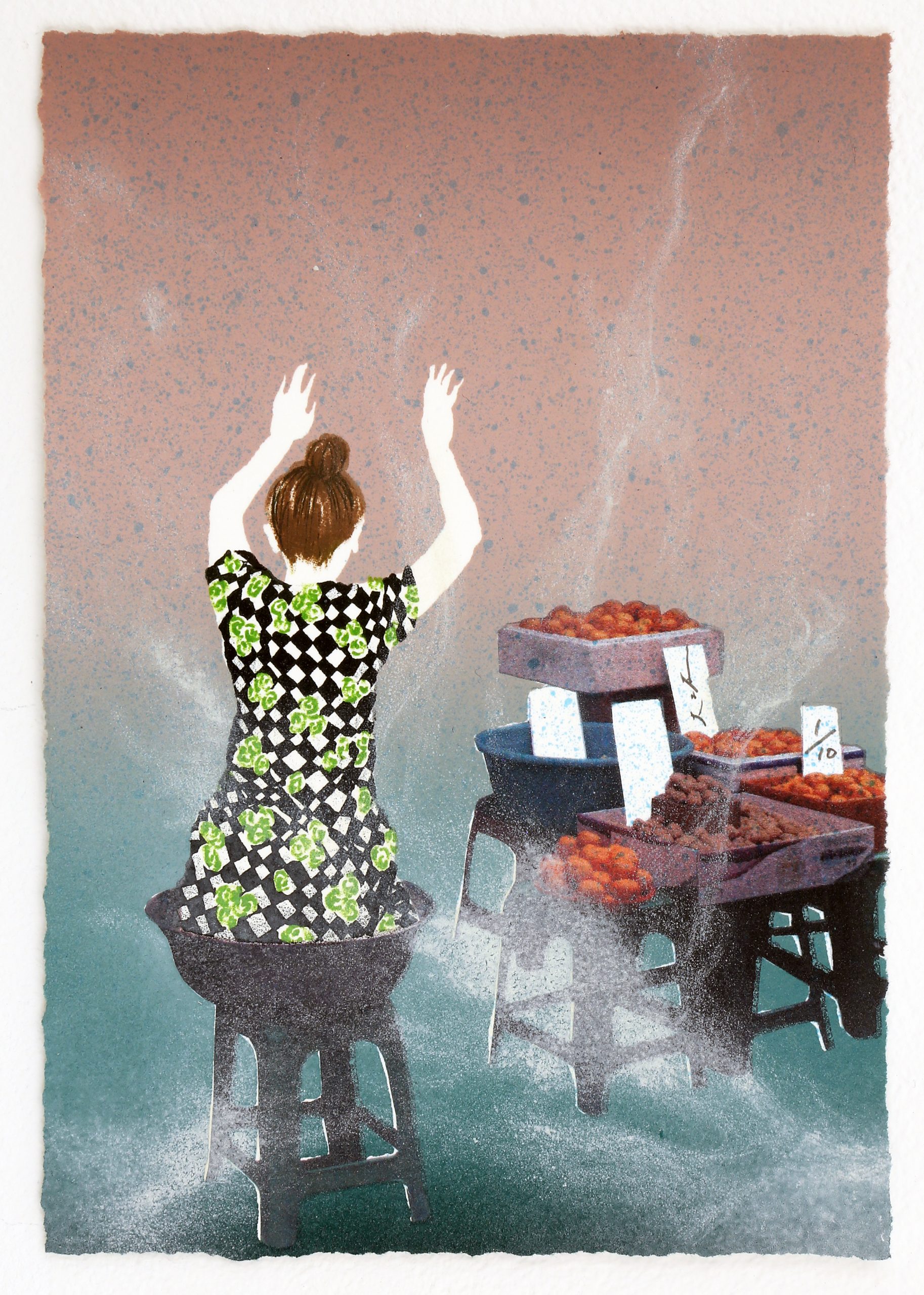 來⾃⽇本東京的⼤坂秩加(Chika Osaka,1984-),近年來備受矚⽬,過去展覽成績斐然,並多次斬獲⽇本國內外獎項肯定。⼤坂秩加的創作源⾃其對凡常⽣活的凝視與感悟,擅長透過純熟的⽇本傳統⽊版畫、平版畫技巧,結合攝影照⽚輸出、異材質拼貼等⼿法,將平素的所⾒所思轉換為符碼,作品意象⽣動,饒富巧思,呈現獨特的感性氛圍,又雜以詼諧調和,搭配⼜⽩式的簡短⾏⽂,圖⽂相互闡釋,來⾃⽇常的傾訴,就這麼穿透了靈魂,直達⼼扉。