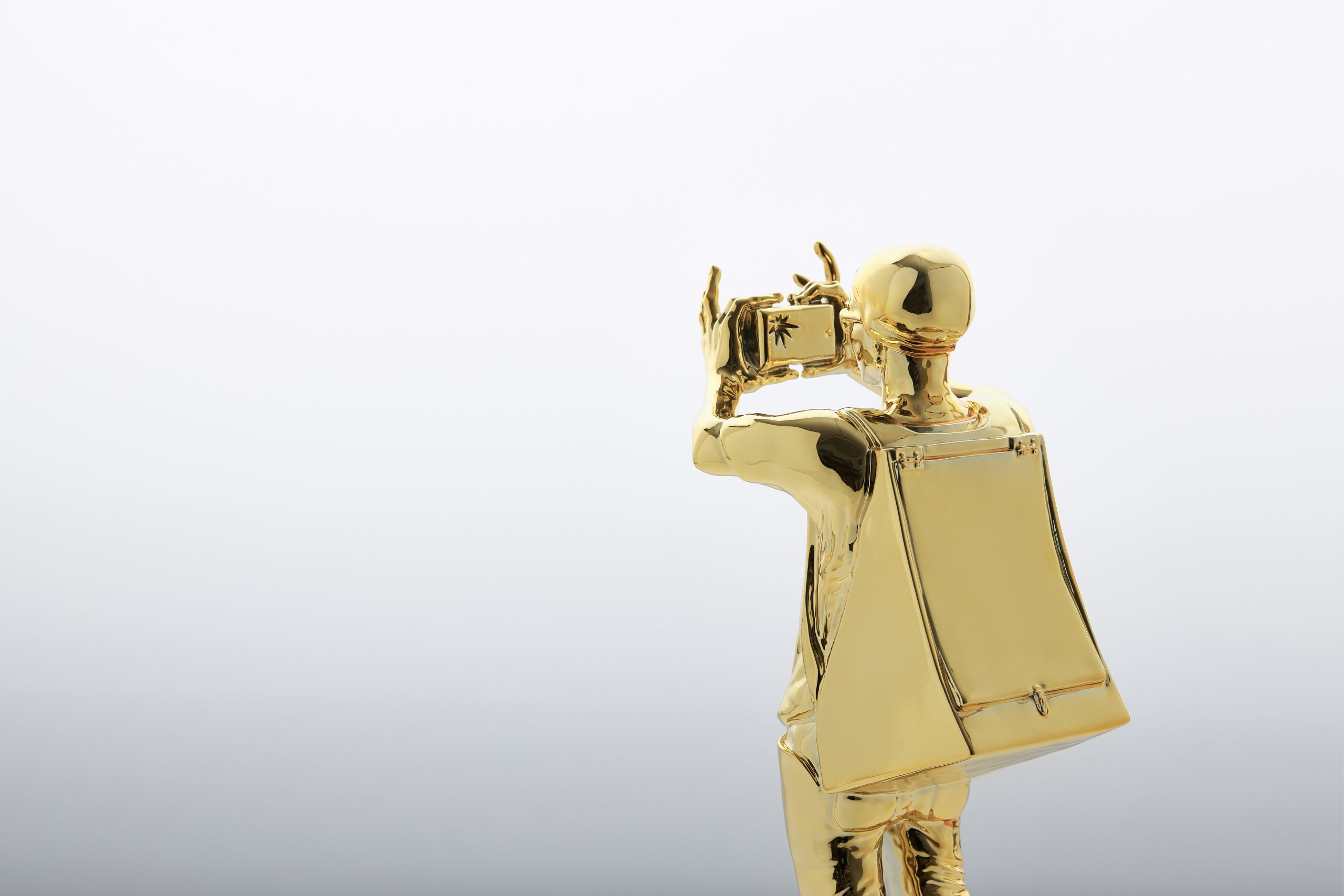Abe Nyubo was commissioned by Treasure Hill Light Festival 2015 to initiate the project of Sight Seeing, the original work of these sculptures. Thanks to its special physical features and local history, Treasure Hill has long been a popular sightseeing spot accommodating many visitors. Abe borrowed the image of one of its visitors, who carried a backpack while holding a camera to take pictures, and created sculptures with the same title, Sight Seeing, which witness the beginning of Abe’s Traveller series.